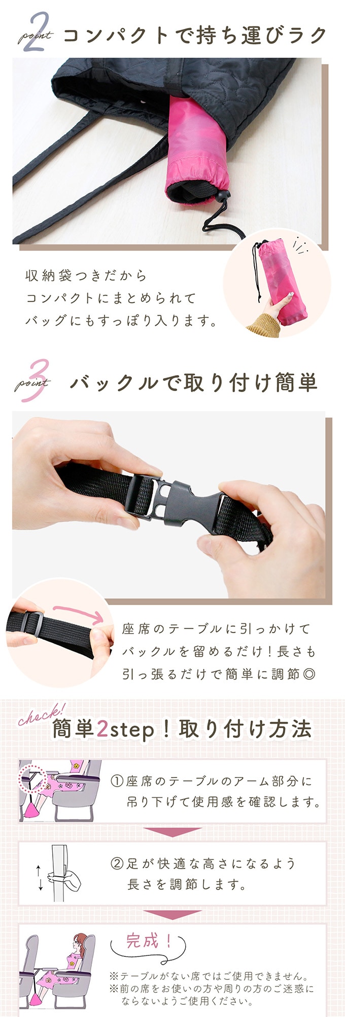 - [ピンク] フットレスト(収納袋+アイマスクのおまけ付き)