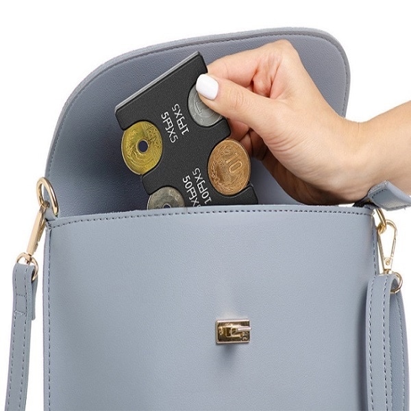 各小銭を4、5枚収納、残り1枚になっても落ちない構造