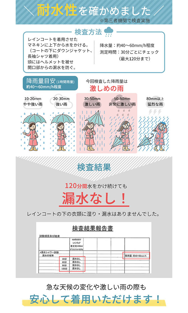 ・着用を繰り返すことにより、撥水効果が低下しますことをあらかじめご了承願います。