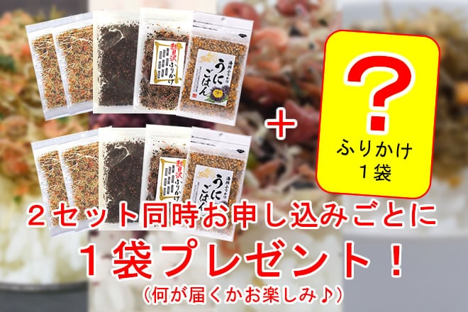 【4種/計5袋】人気の半生ふりかけ全4種☆食べ比べ♪「ほかほかご飯」「おにぎり」「お茶漬け」計5袋 | 「鮭ちりめんタラ入」「赤しそ」「贅沢」「雲丹(うに)」※2セット同時申込で1袋プレゼント♪