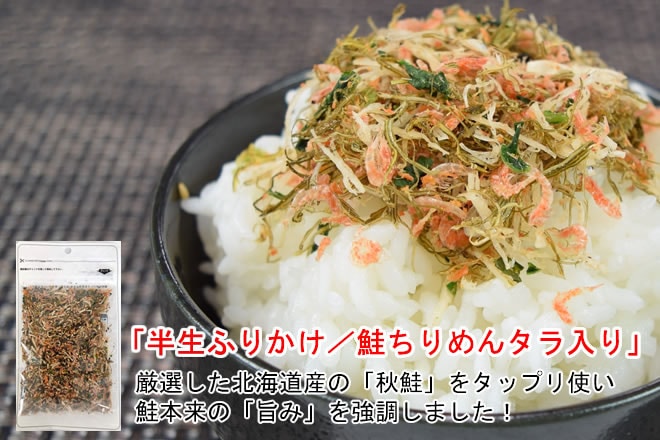 - 【1袋】半生ふりかけ 北海道秋鮭とちりめんタラ入り※2セット申込み毎にもう1袋プレゼント!