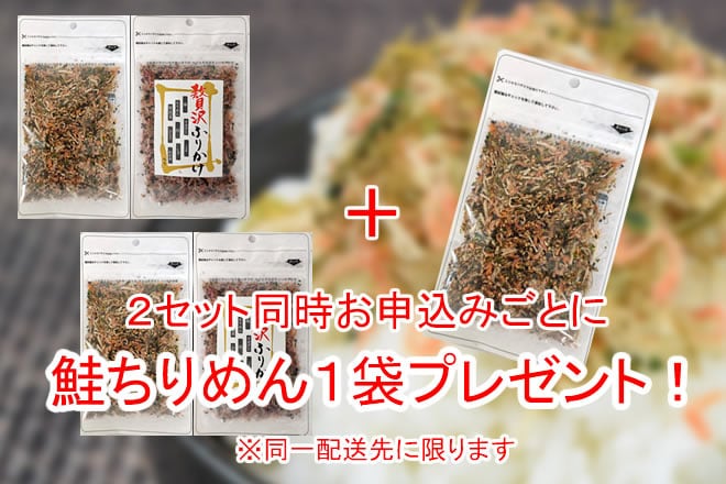 ※2セット申込み毎に「半生ふりかけ鮭シャケちりめんタラ入り」1袋進呈!