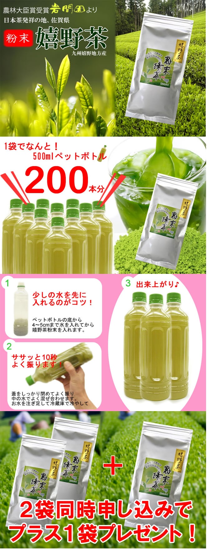 - 【100g】嬉野茶 粉末タイプ ※2セット同時申込で1袋プレゼント♪ICEならペットボトル200本分
