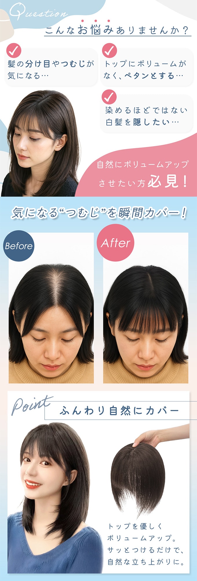 ・地肌感が自然な人工頭皮だから、自然なつむじで目立ちにくい