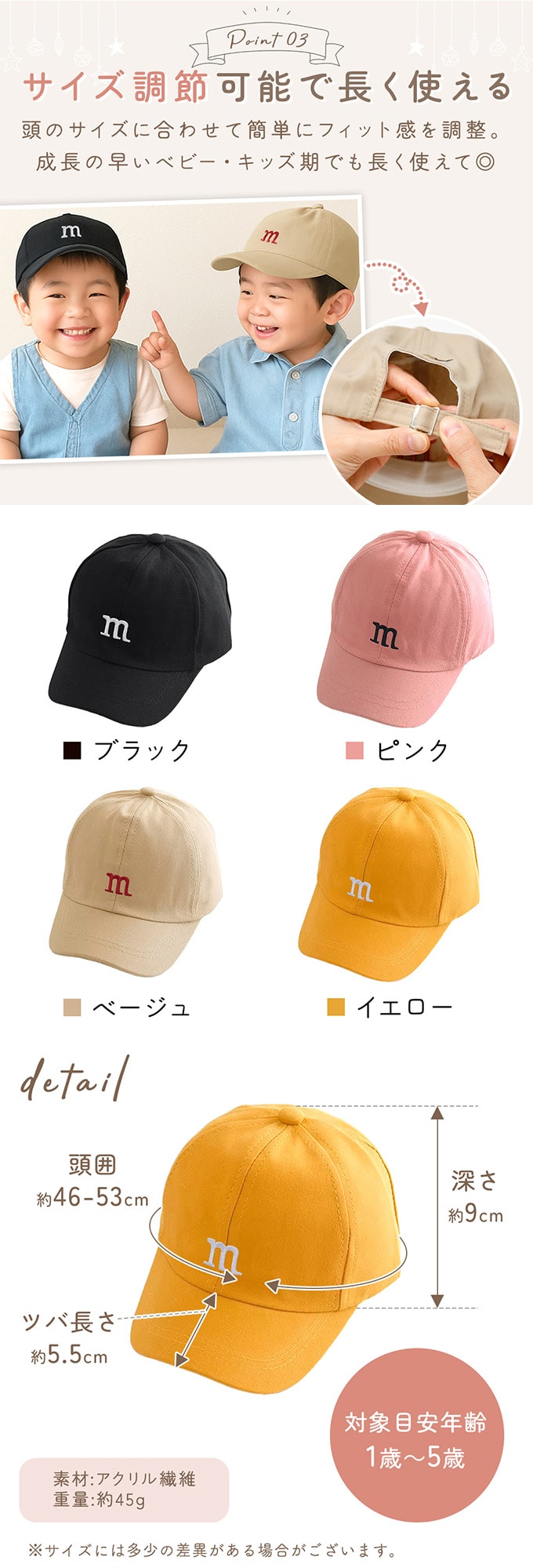 - [ピンク/1-5歳目安]ベビー&キッズ キャップ