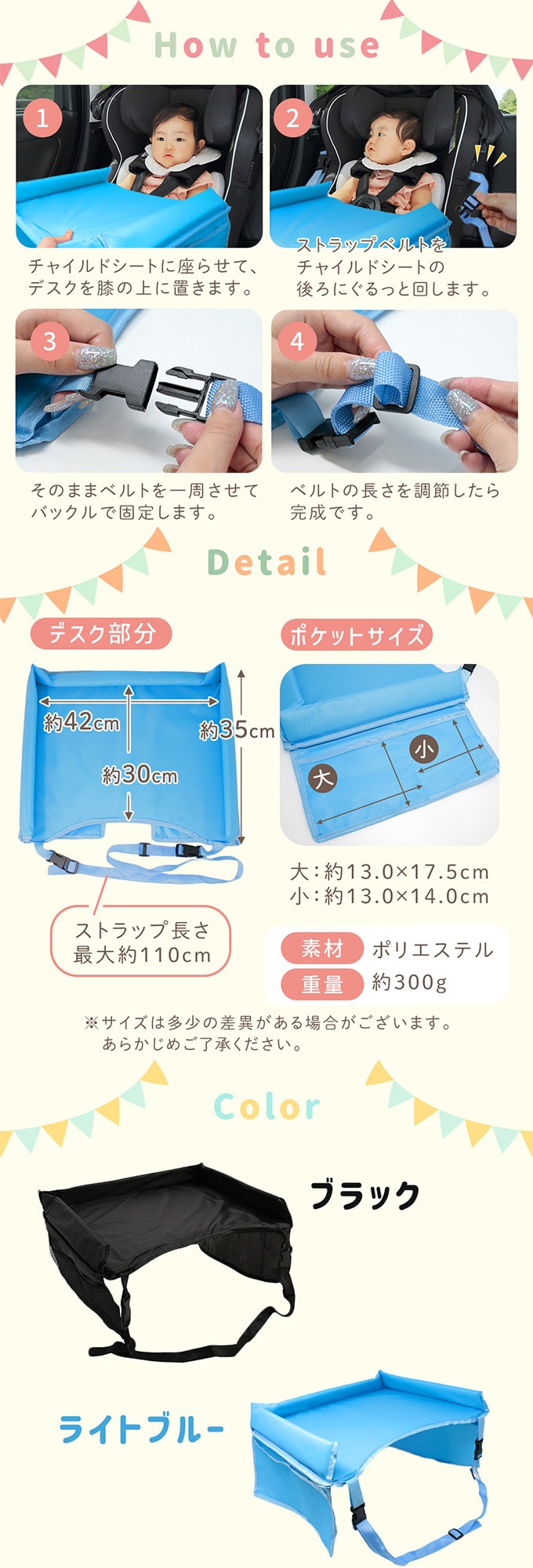 [ライトブルー]車用 チャイルドデスク | 取り付け簡単&安定感抜群 車内用キッズテーブル