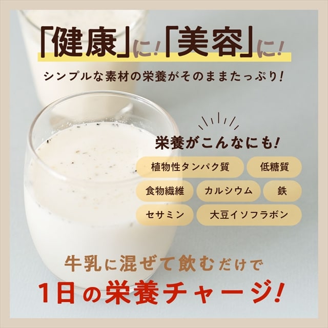 「黒ごまきな粉」は、カルシウムと鉄を含む栄養機能食品に加え、黒すりごまと大豆(きな粉)を独自の黄金比でブレンドしています。「黒ごまきな粉と言えば味源」、黒ごまと大豆のパワーをスプーン1杯から、お手軽に毎日の食事に摂り入れられます。健康には欠かせないセサミンも手軽に摂取できます。