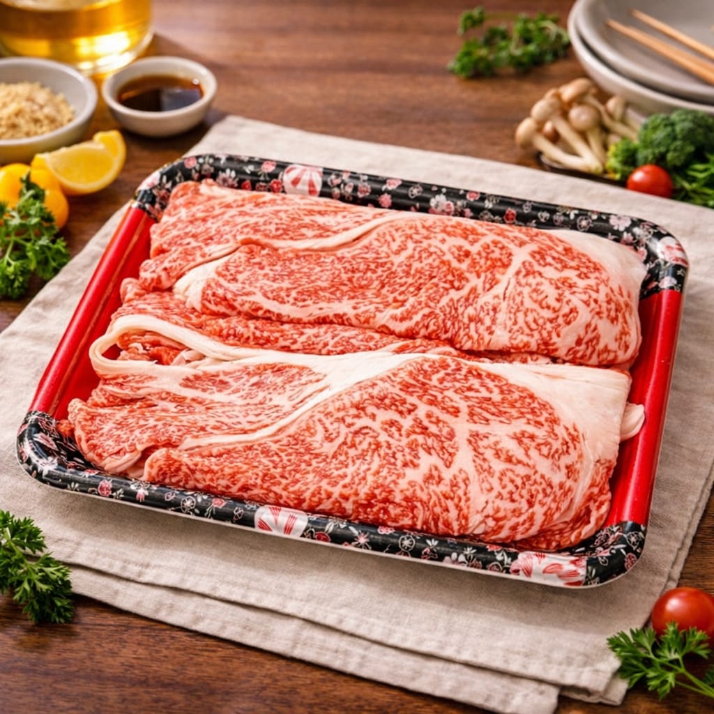 ハレの日の食卓を彩る、九州産黒毛和牛の肩ローススライス。きめ細やかな霜降りと赤身のバランスがとれた肩ロースは、口に入れた瞬間に広がる豊かな旨みと、とろけるようなやわらかな食感が特徴です。お肉本来の芳醇な香りが食欲をそそり、ご家庭での食事が特別なひとときへと変わります。