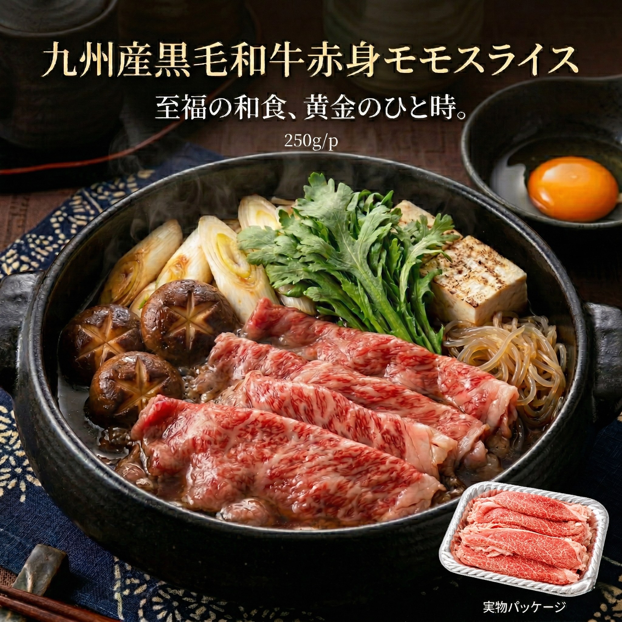 【250g】九州産黒毛和牛赤身モモスライス 牛肉本来の濃厚な肉旨味とさっぱりとした後味 | 脂控えめ、旨味は極上。九州産黒毛和牛が誇る「芳醇な赤身」の深みある味わいを、心ゆくまで。
