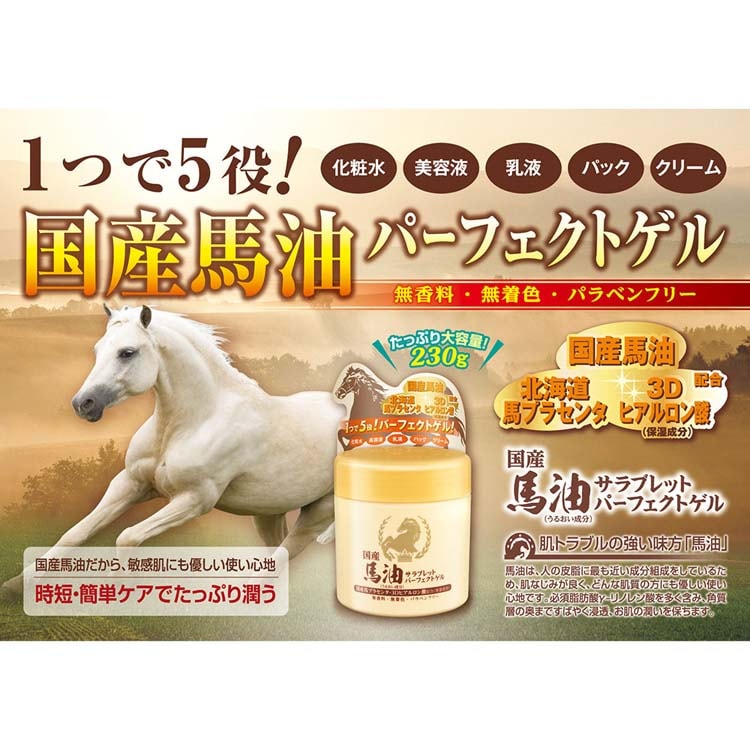 【日替わり数量限定】【230g×2個】馬油サラブレッドパーフェクトゲル|1つで5役のパーフェクトオールインワンゲル! | 国産馬油・北海道産馬プラセンタ配合!化粧水・美容液・乳液・パック・クリーム