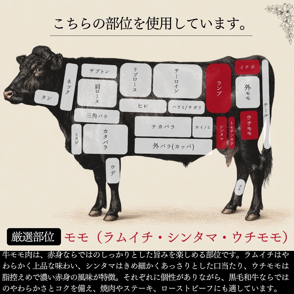 ・原材料名:牛モモ(国内産黒毛和種)