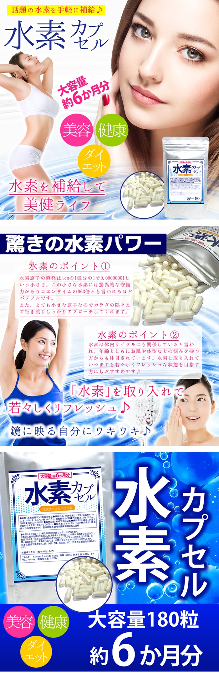 大容量約6か月分 水素カプセル 180粒