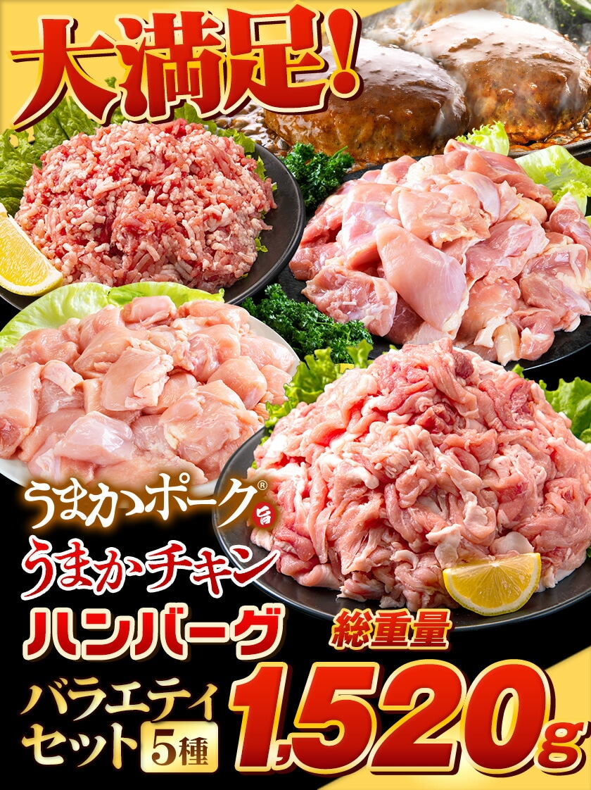 - 名称:うまかポーク・チキン、ハンバーグ、バラエティ5種セット
