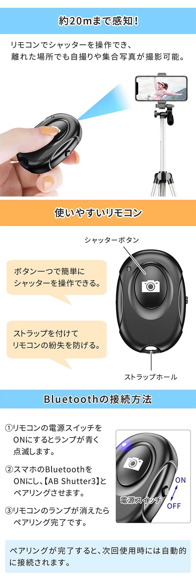 Bluetoothリモコン | ボタンひとつでシャッターを操作!離れた場所でも自撮り・集合写真が撮れる