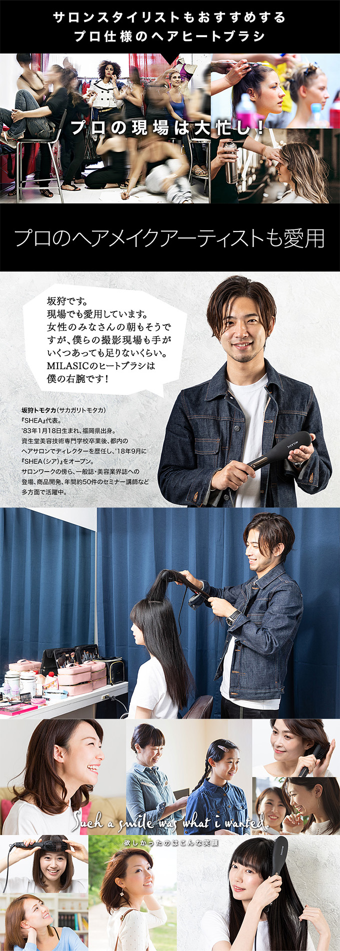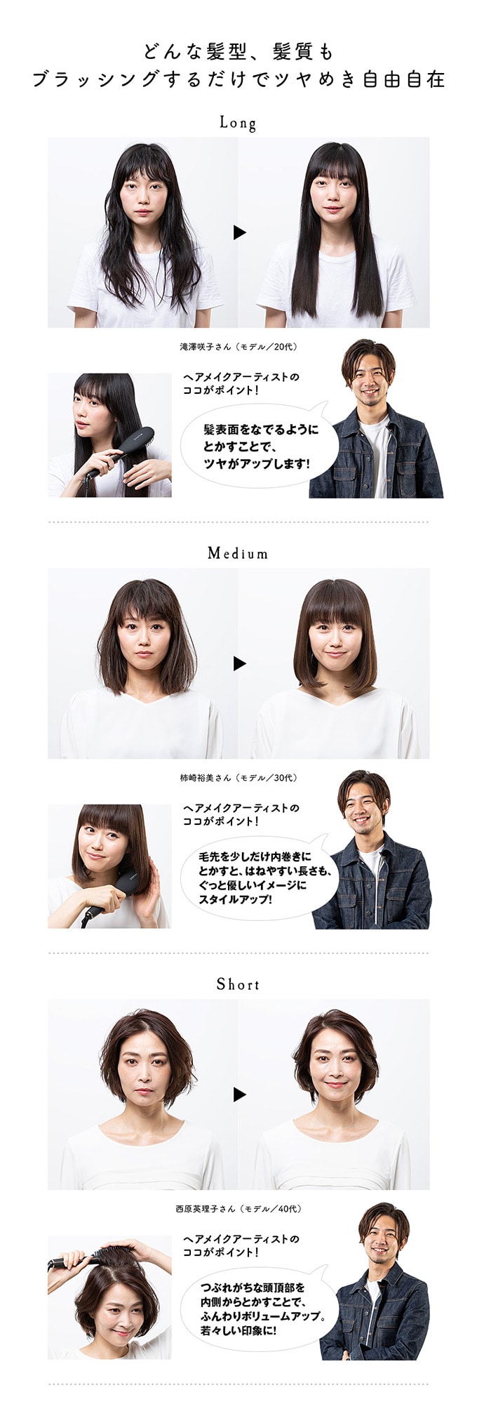 ・ショートヘアからロングヘアまで使えるブラシ型ヘアアイロン