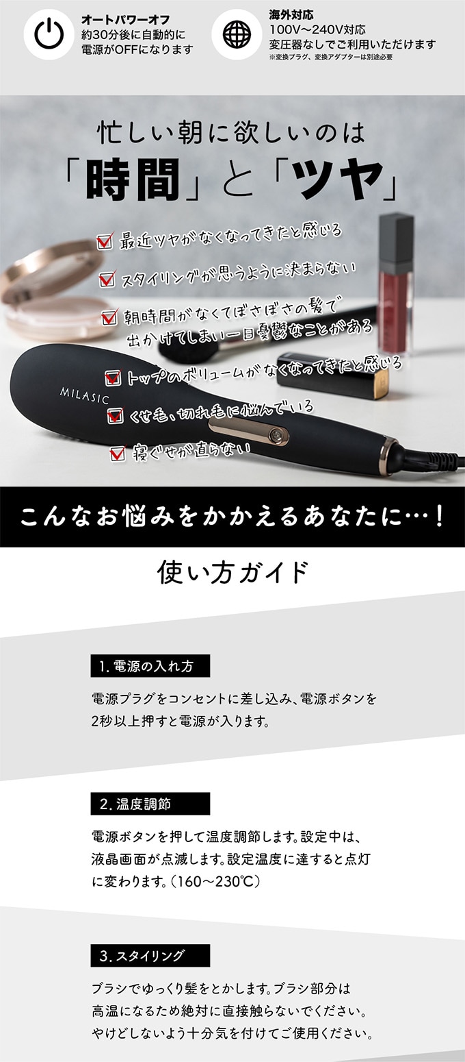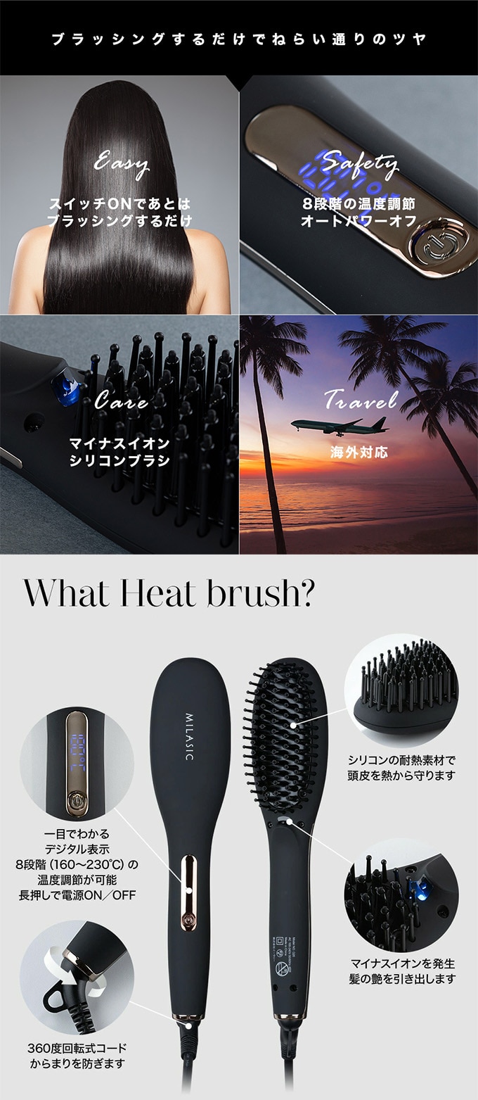 [海外対応]ヘアヒートブラシ ヘアアイロン ブラシ型 | ブラッシングするだけで簡単スタイリング!ショートヘアからロングヘアまで使える