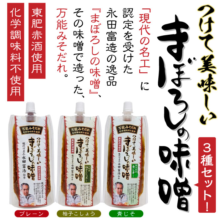 (3種)万能みそだれ3袋セット-つけて美味しい-まぼろしの味噌(プレーン、柚子こしょう、青じそ) | 化学調味料不使用。幻の味噌でつくった万能みそだれ!温野菜、ふろふき大根、焼きなす、豆腐等に