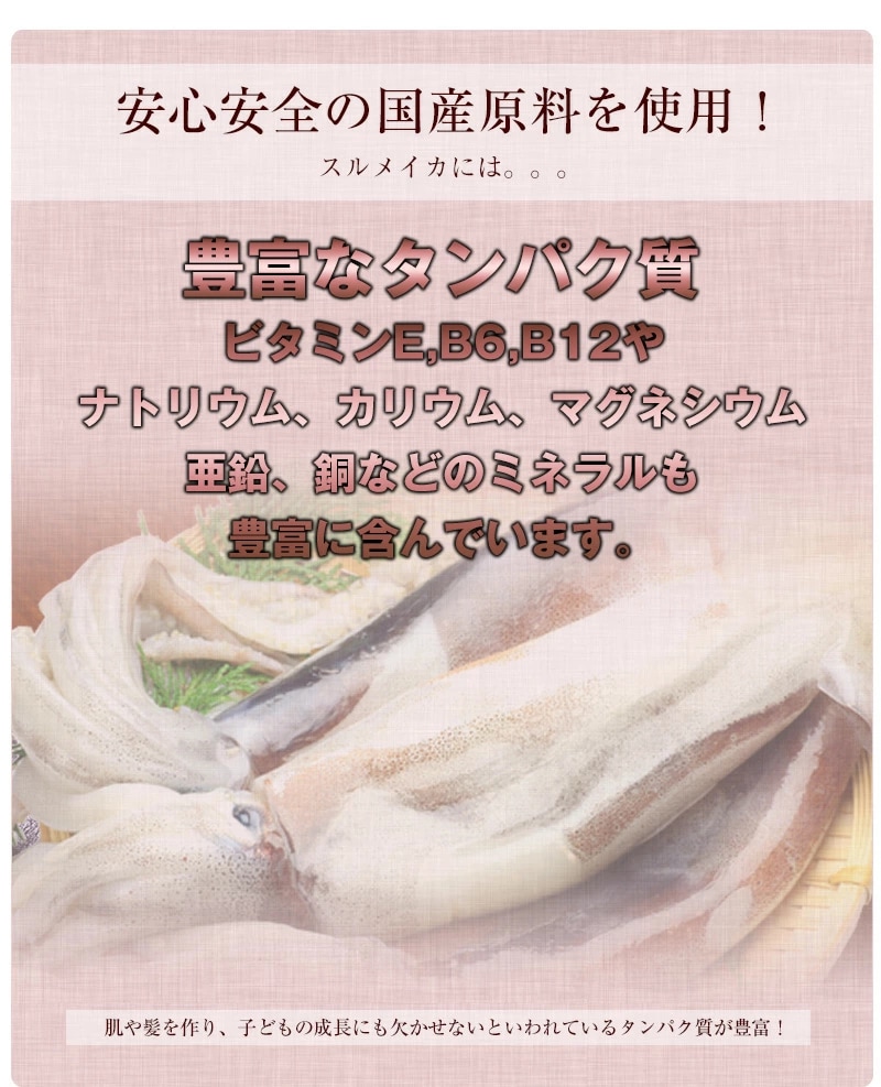 ★新鮮で安心の国産原料。北海道産のするめいかを使用した、いか焼足です。