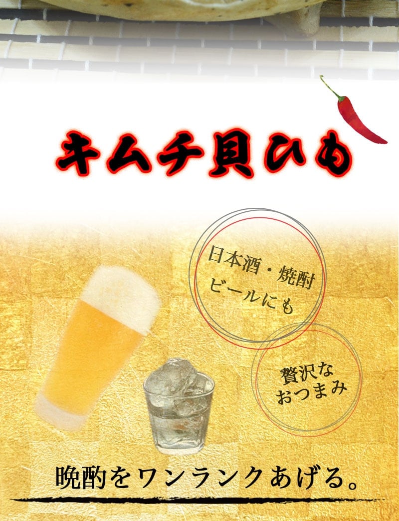- 【2袋】新鮮な国産ほたてをキムチ味に仕上げた贅沢な逸品! 「ほたてキムチ貝ひも」少しだけ贅沢な晩酌を