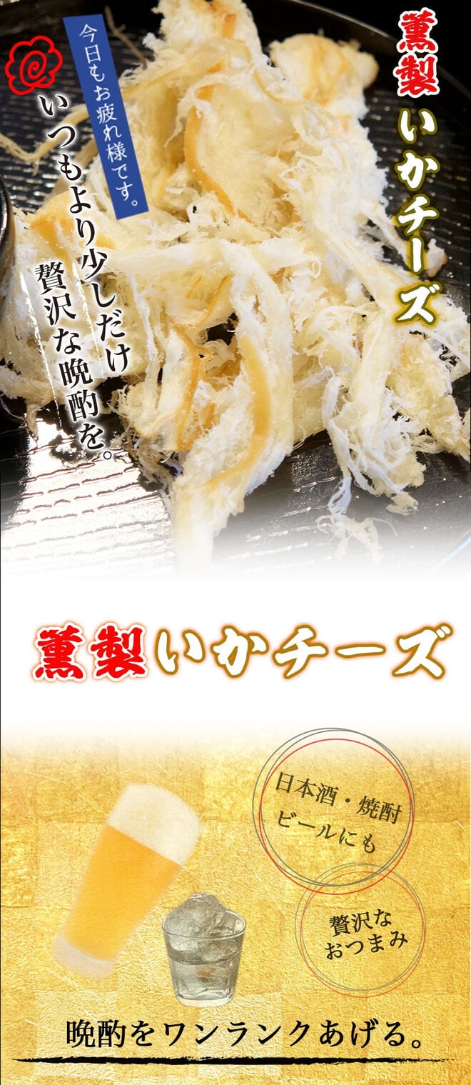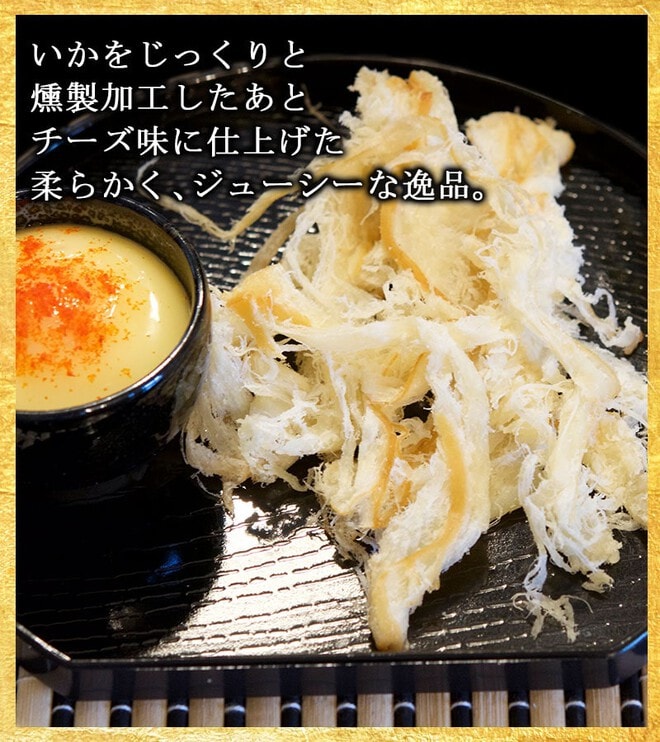 新鮮ないかをじっくりと燻製加工したあと、チーズ味に仕上げました!
