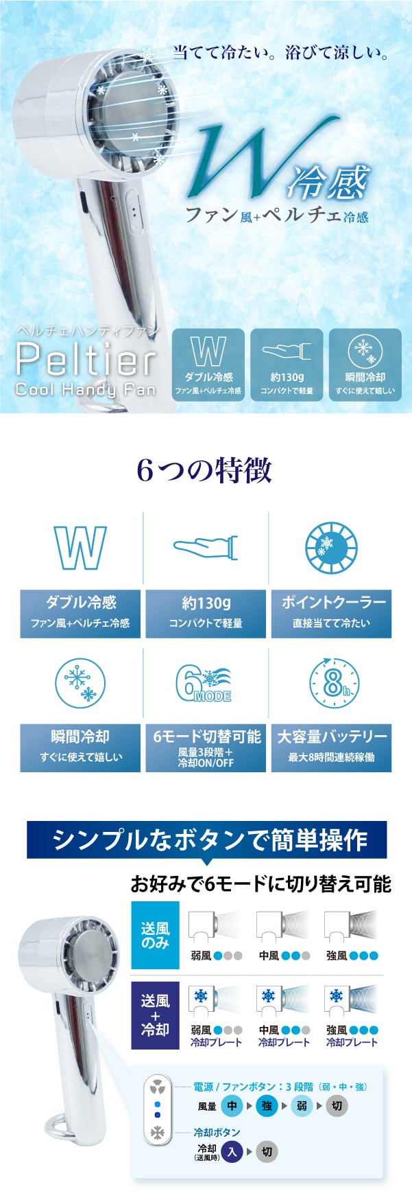 【メタリックシルバー】ペルチェクールハンディファン | コンパクトだから、どこでも持ち運べて快適・便利!