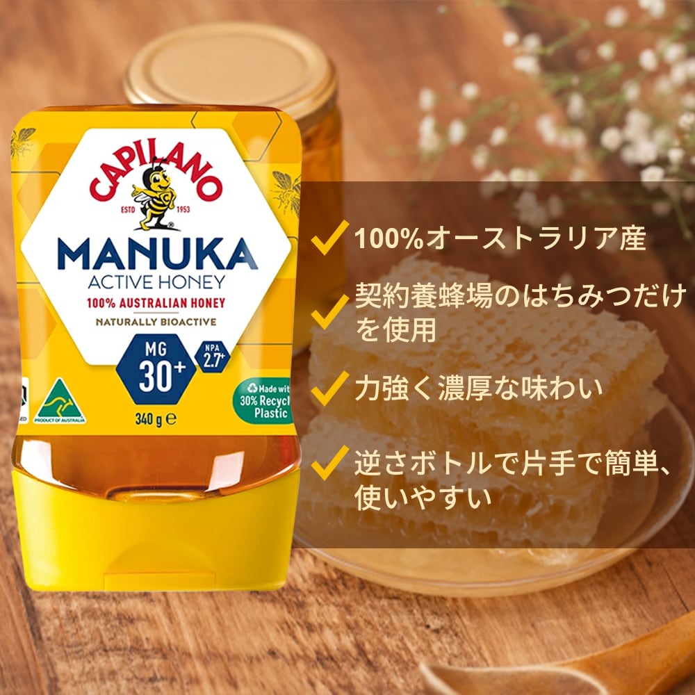 【340g×1本】カピラーノアクティブマヌカハニーMG30+ 100%オーストラリア産