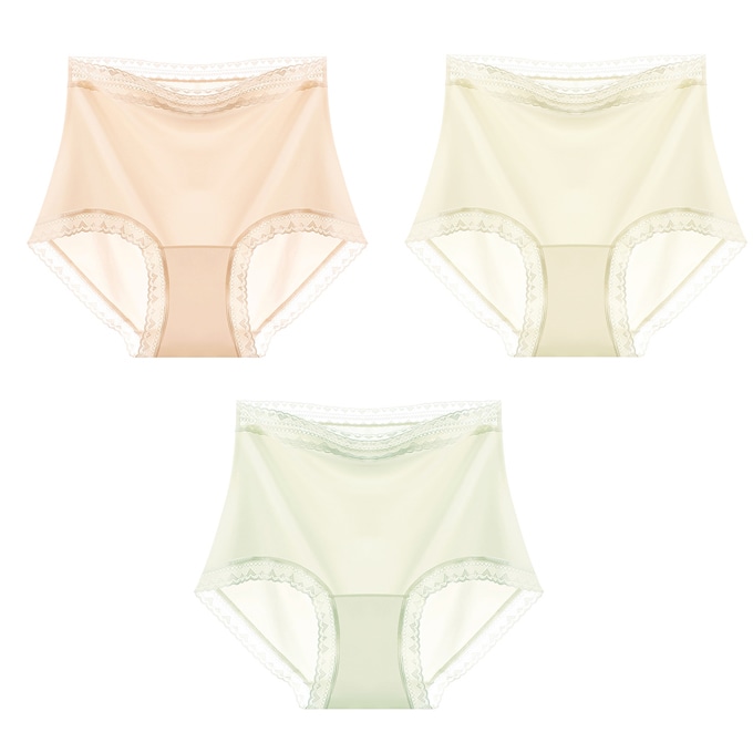 - 【XLサイズ(11-13号)/3色セット】薄手ハイウエストレースショーツ