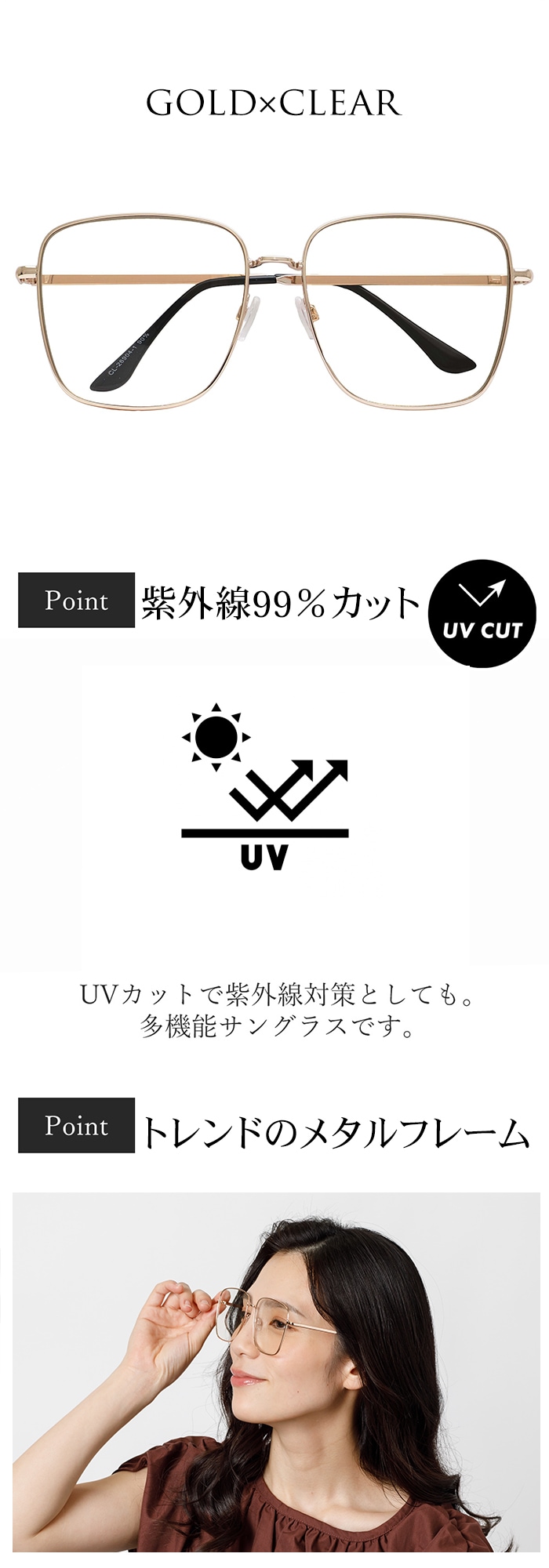 ・商品カラー:レンズクリア フレームゴールド
