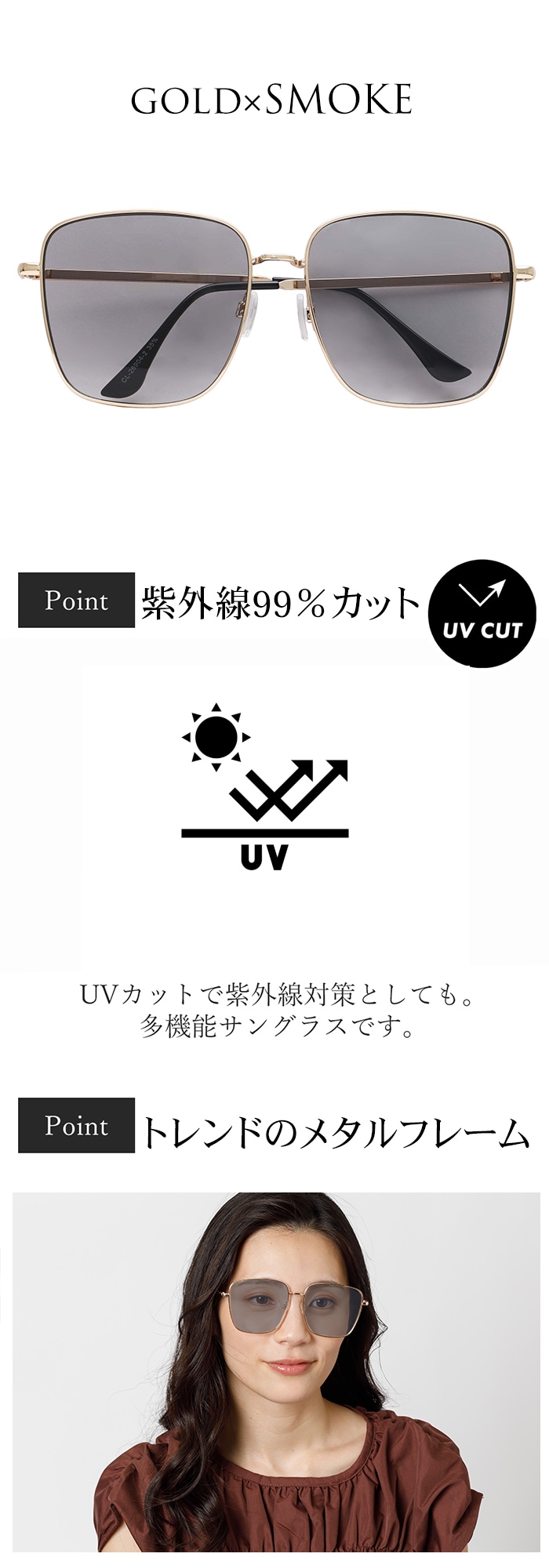 ・商品カラー:レンズスモーク フレームゴールド