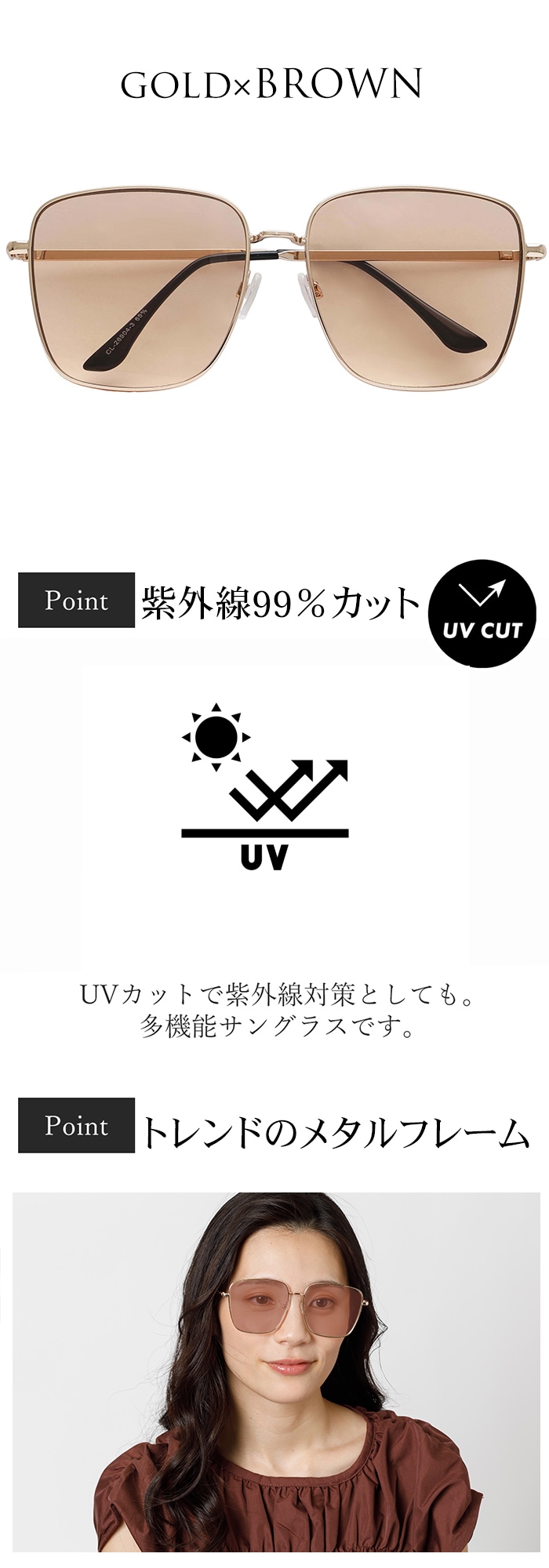 【メタルビッグフレーム】<ブラウンレンズ> サングラス UVカット99% QL-48 | トレンドの大き目メタルフレーム