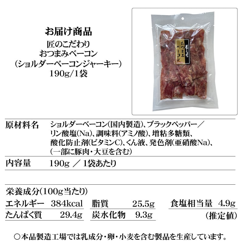 【1900g(190g×10袋)】匠のこだわり ショルダーベーコンジャーキー | 噛めば噛むほど癖になる!酒の肴にバッチリ♪