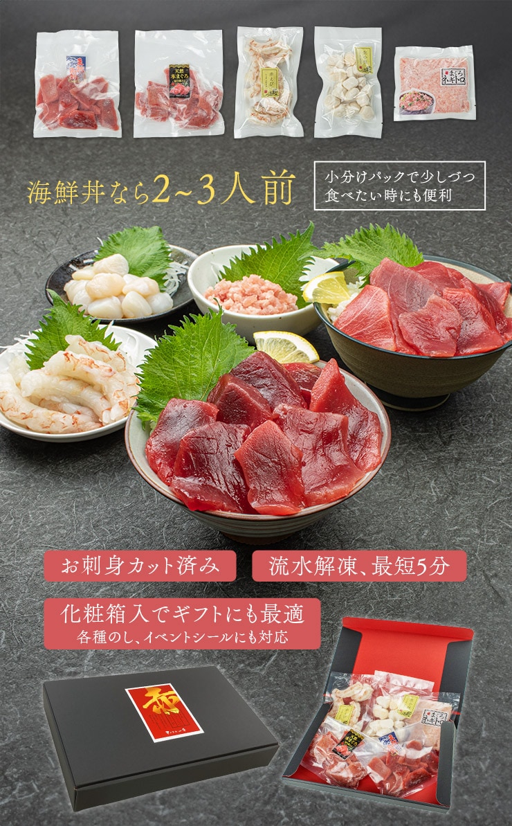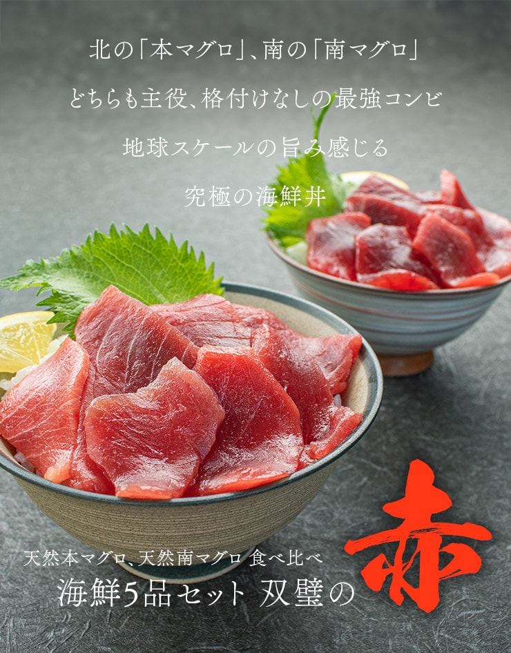 天然本マグロ&南マグロ入り!海鮮セット「赤」海鮮5種ギフト対応商品[[海鮮セット赤] | 母の日、父の日におすすめ!本マグロとミナミマグロとの共演!自宅で豪華海鮮丼!