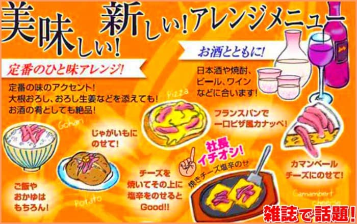 いか(国産)、食塩、唐辛子/調味料(アミノ酸等)、ソルビット、酒精、甘味料(ステビア、甘草)、酸味料、増粘多糖類(一部にいかを含む)