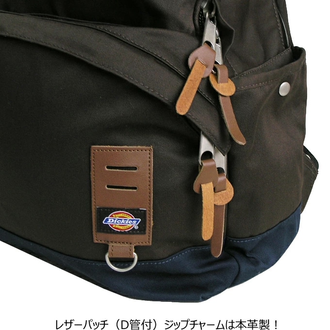 【日替わり数量限定】【ブラウン】Dickies/ディッキーズ バックパック | TC/ツイル生地で耐久性が高く、ジップやチャーム部に牛革を使用したスペシャルモデル