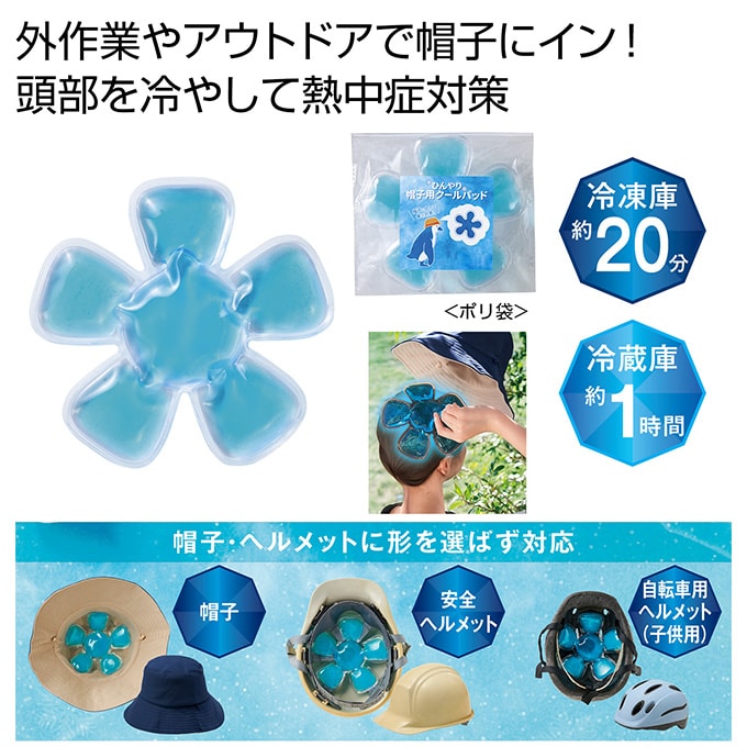 帽子やヘルメットの内側にセットするだけで、頭部を効率よく冷やすクールパッド。