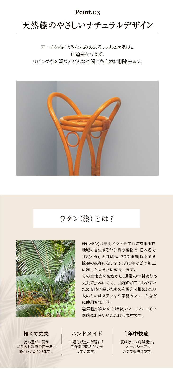 ■ 軽量かつ頑丈な「天然籐(ラタン)」素材