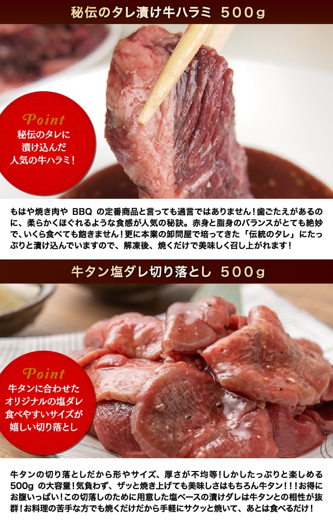 計1kg/極厚秘伝の牛ハラミ&牛タン塩ダレ | 噛めば噛むほど溢れ出る牛肉の旨味!極厚牛ハラミとさっぱり塩ダレ牛タンの限定セットです!