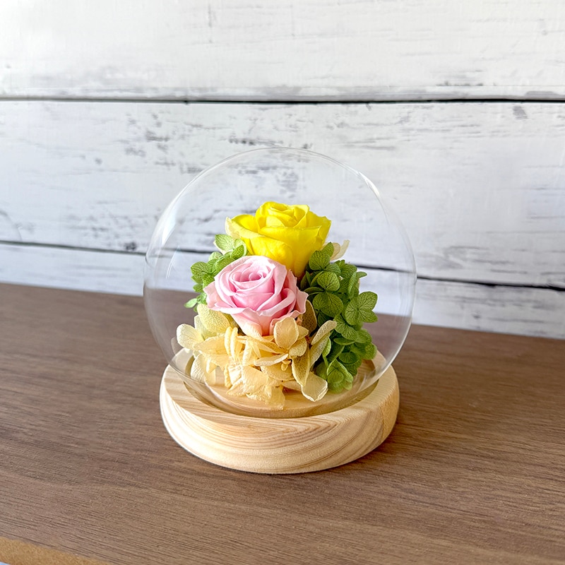 【希(イエロー)】ドーム型 プリザーブドフラワーアレンジメント | プレゼントに最適! 手のひらサイズの可愛いプリザーブドアレンジメント!