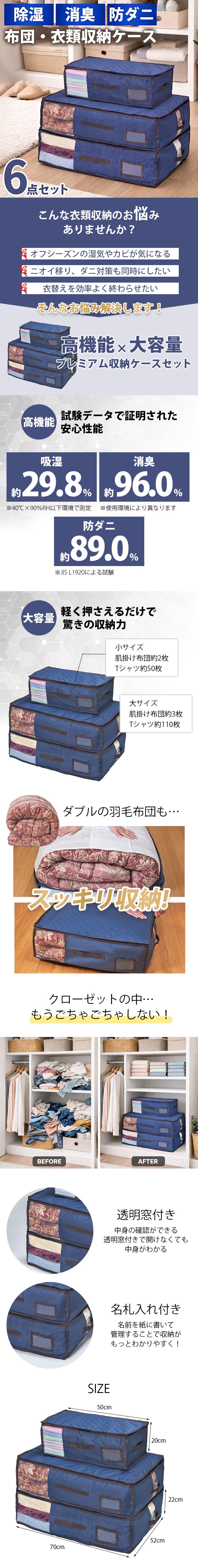 【6点セット】湿気・ニオイ・ダニから守る収納ケース | 除湿・消臭・防ダニ効果を兼ね備えた収納ケース!