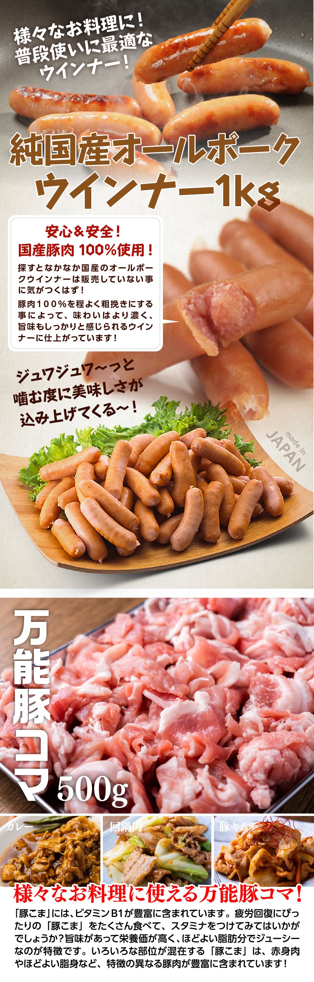 - 【計1.5kg】純国産ポークウインナー&豚こまセット