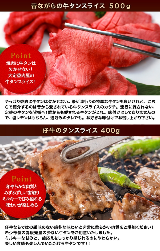 900g/牛タン食べ比べ(昔ながら&仔牛の牛タン) | 噛めば噛むほど溢れ出るジューシーな肉汁!昔ながらの牛タンと仔牛のタンの食べ比べセット!