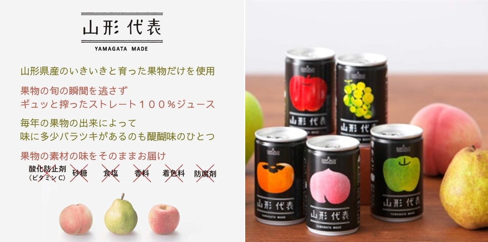 『山形代表 りんご』は、輝くような甘さの「ふじ」と甘酸っぱい「紅玉」をブレンドしたストレート果汁100%ジュースです。