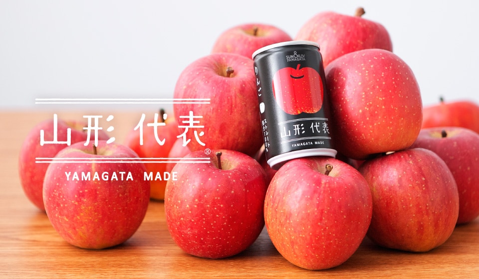 『山形代表 りんご』は、輝くような甘さの「ふじ」と甘酸っぱい「紅玉」をブレンドしたストレート果汁100%ジュースです。