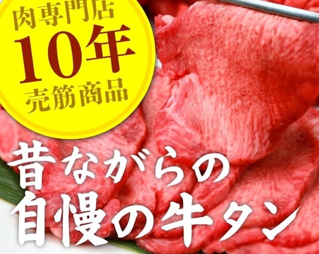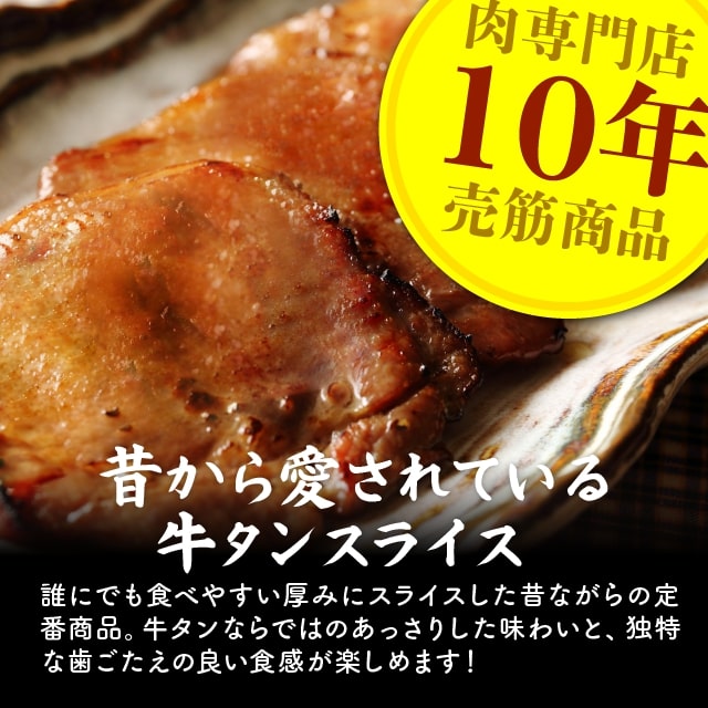 肉の卸問屋として、長年地元の焼肉屋さんへお肉を卸してきた経験則で、食べやすく美味しい牛タンスライスを提供開始したのがおよそ10年前、提供開始より変わらず当店の人気定番商品となっております。