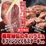 - 計1kg/極厚秘伝牛ハラミ&牛フィレ一口ステーキ