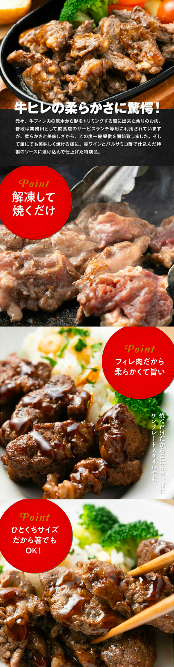 【2kg(500g×4)】牛フィレ ひとくちステーキ | 上質な牛フィレ肉を赤ワインとバルサミコ酢の特製ソースで仕上げた贅沢な逸品です!