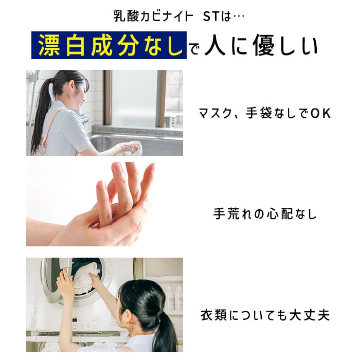 *漂白成分がありませんので衣服についても安心。布や木製品まで幅広くお使いいただけます。
