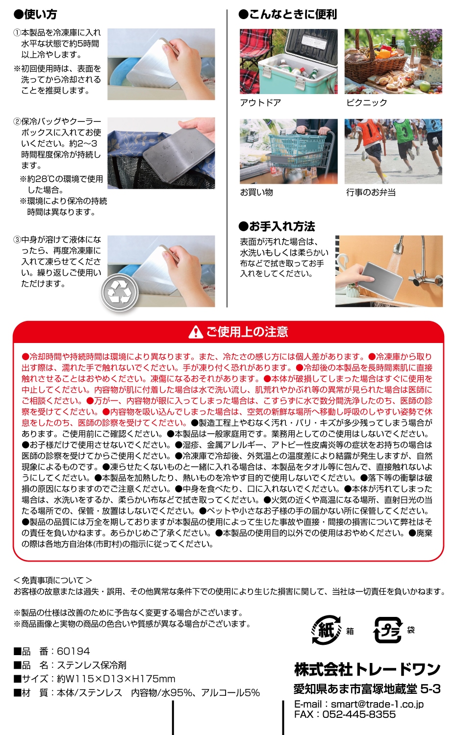 2.保冷バックやクーラーボックスニ入れてお使いください。