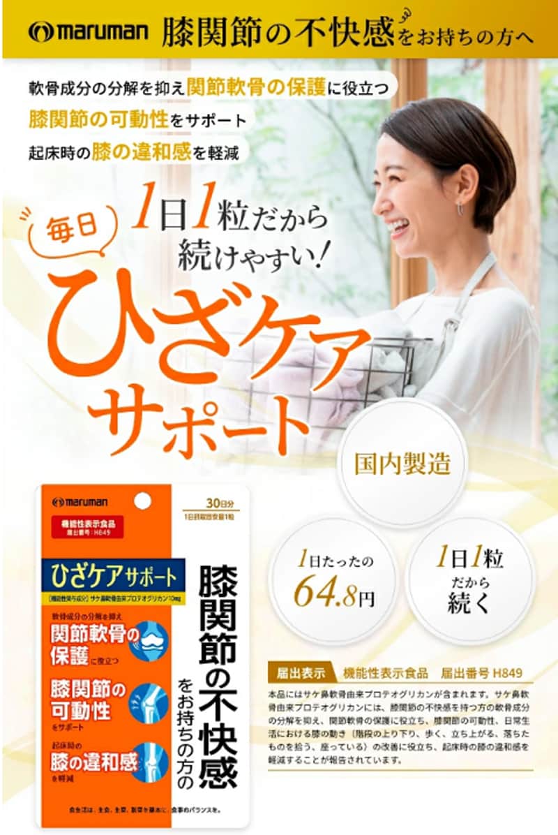 【日替わり数量限定】[3袋セット(1袋あたり30粒)] マルマン/ひざケアサポート ※機能性表示食品※袋擦有り | 膝関節の不快感をお持ちの方へ!1日1粒だから続けやすい!