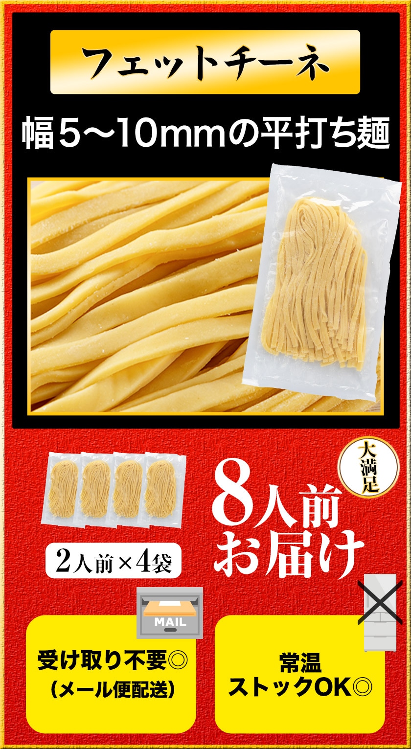 - 本格生パスタフェットチーネ 1セット8食分(2食入り×4袋/1食あたり180g以上)